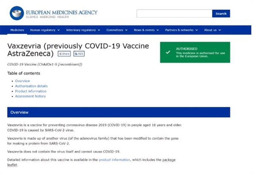Vaxzevria είναι το νέο όνομα του εμβολίου της