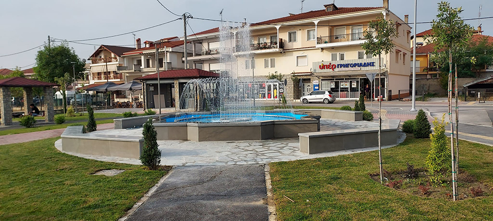 Σε λειτουργία και το συντριβάνι που δημιουργήθηκε στον κόμβο του δημαρχείου. Ένας πολύ όμορφος χώρος αναψυχής στο κέντρο της πόλης, δίπλα ακριβώς στο ανακαινισμένο Νέο Πάρκο, που σφύζει κάθε μέρα από ζωή.