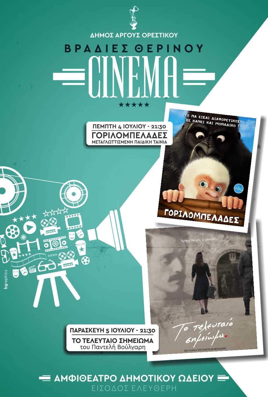 Σε περίπτωση κακοκαιρίας, οι προβολές των ταινιών θα πραγματοποιηθούν στην αίθουσα εκδηλώσεων του Δημοτικού Ωδείου