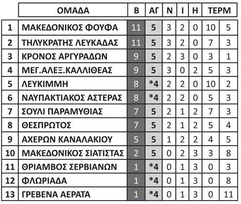 Τα αποτελέσματα της 5ης αγωνιστικής