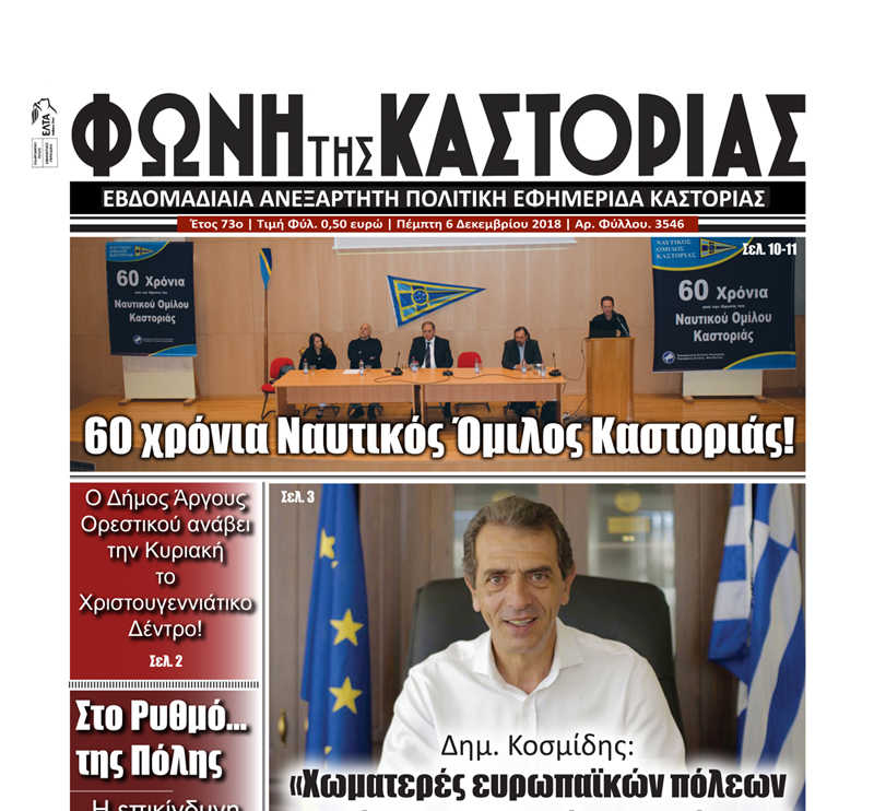 Το πρωτοσέλιδο της εφημερίδας μας “ΦΩΝΗ ΤΗΣ ΚΑΣΤΟΡΙΑΣ” | 6 / 12 / 18