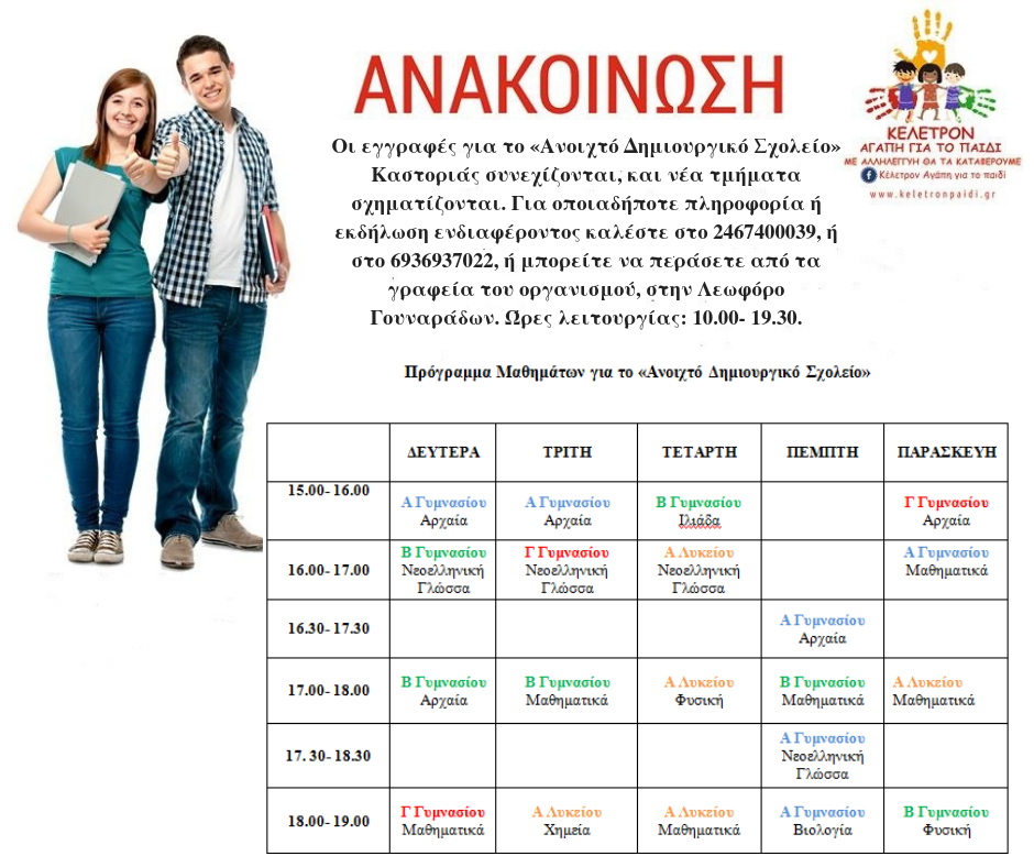 Το Πρόγραμμα μαθημάτων του «Ανοιχτού Δημιουργού Φροντιστηρίου» Καστοριάς έχει ανακοινωθεί!