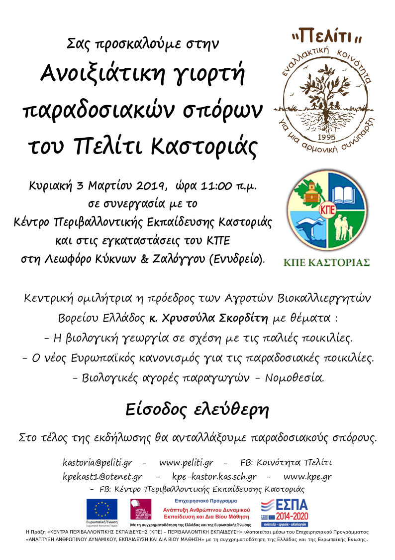 3.3.19 στο ΚΠΕ Καστοριάς στις 11:00 π.μ.