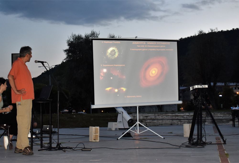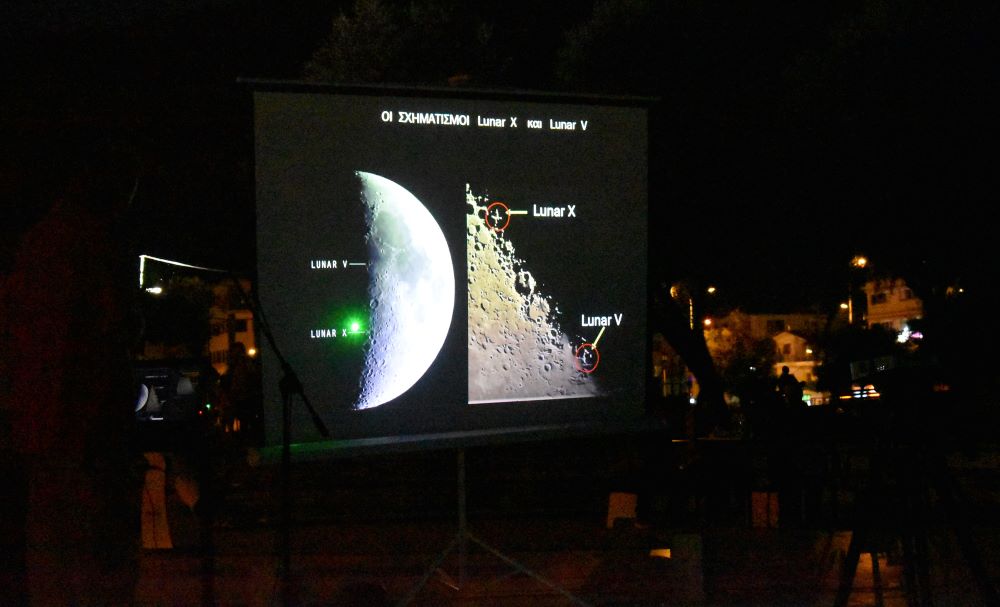 Ο Αντιπρόεδρος του Συλλόγου, Θωμάς Μπατσέλας, σε ρόλο ξεναγού, παρουσίασε χρήσιμες πληροφορίες για τη Σελήνη, τον «αχώριστο σύντροφο της Γης» και τα ουράνια σώματα, κερδίζοντας την προσοχή μικρών και μεγάλων που έδωσαν το παρών στο Πάρκο Ολυμπιακής Φλόγας.