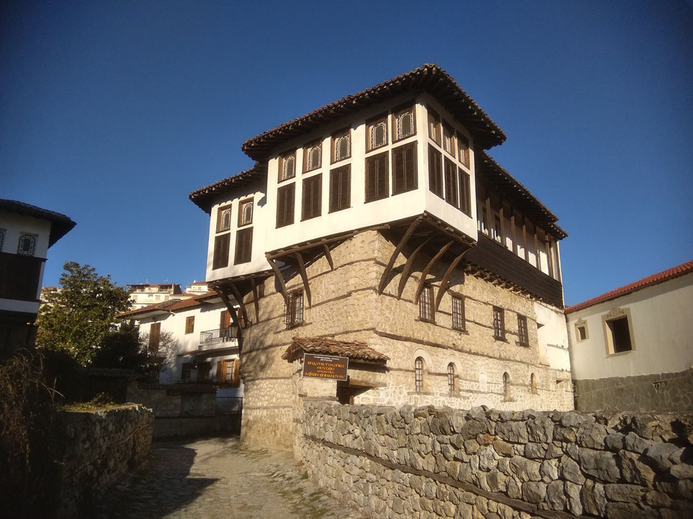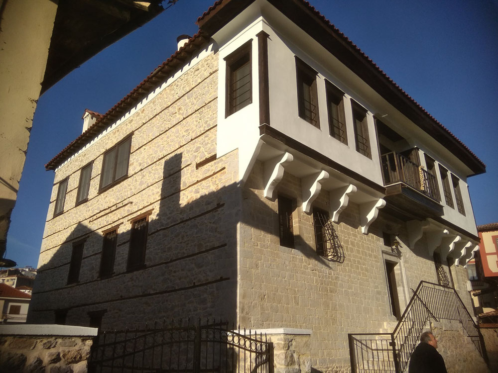 Το επιβλητικό αρχοντικό Αδελφών Εμμανουήλ με τους σπάνιους τριγωνικής προβολής ηλιακούς οντάδες.