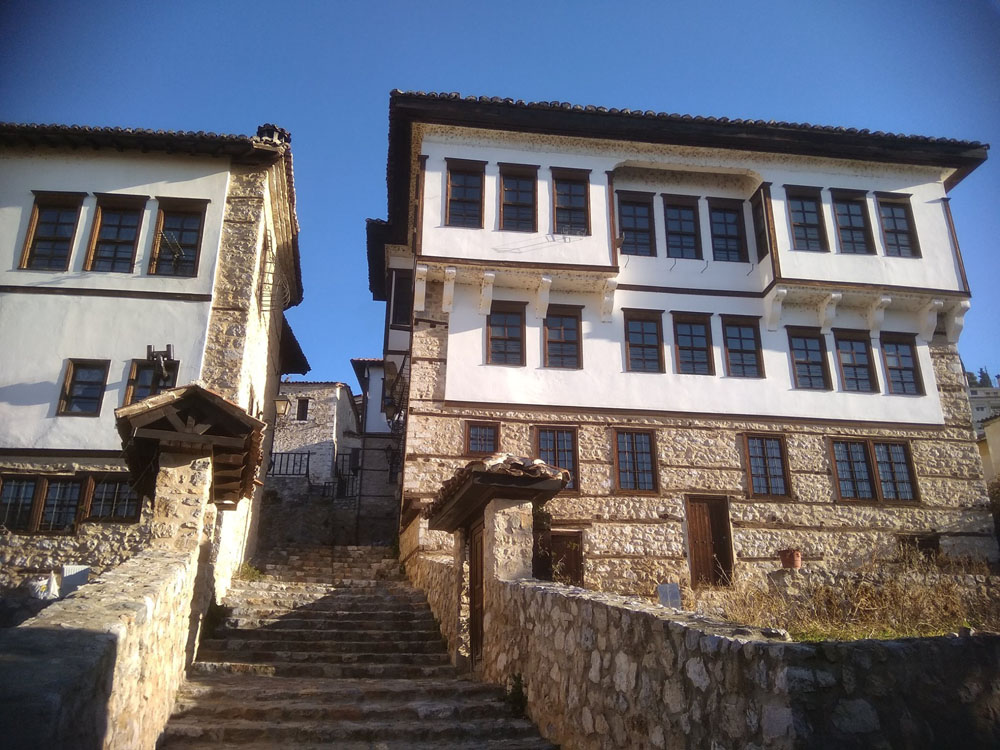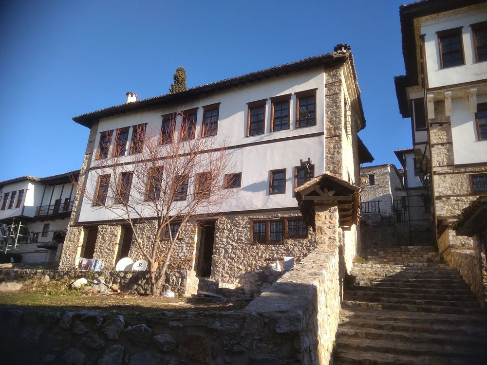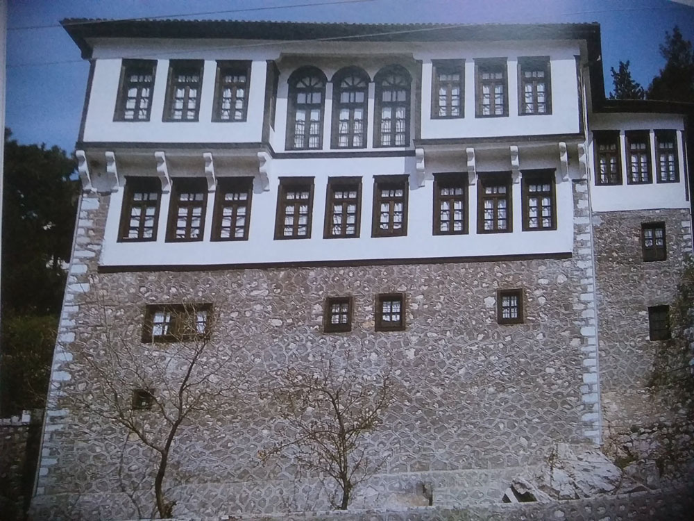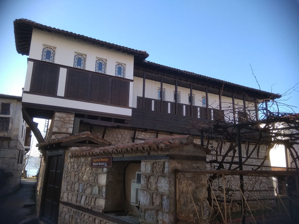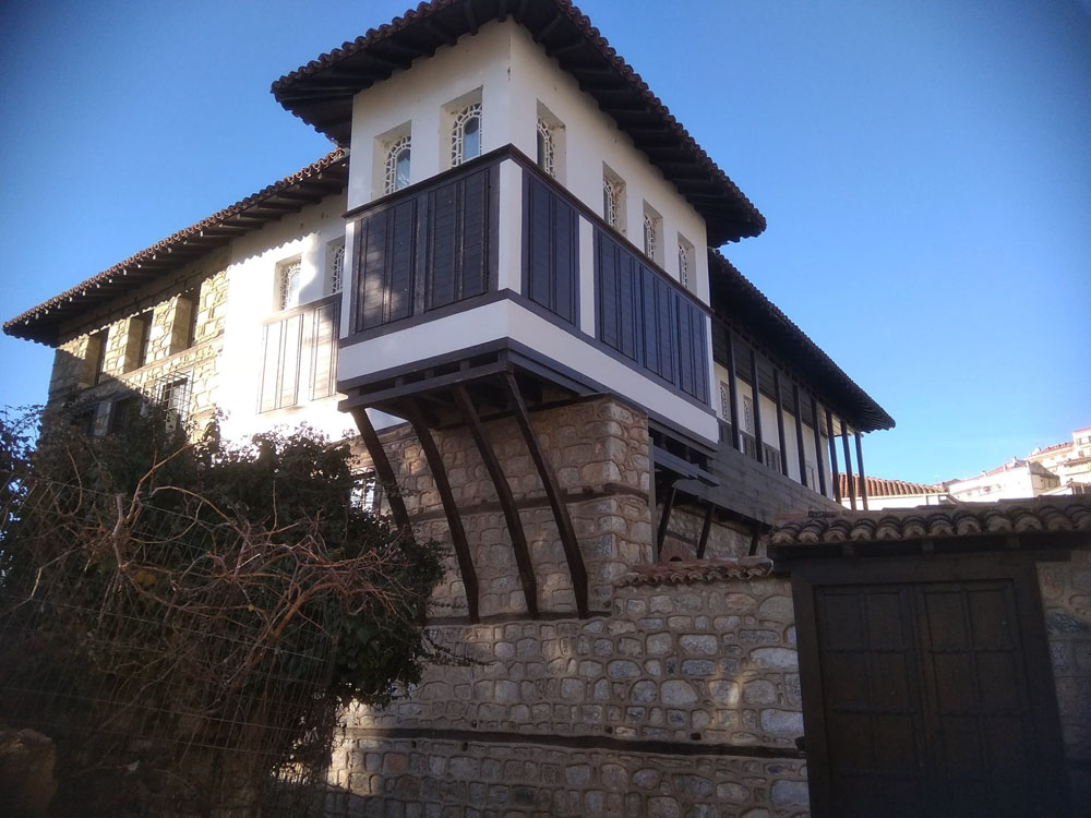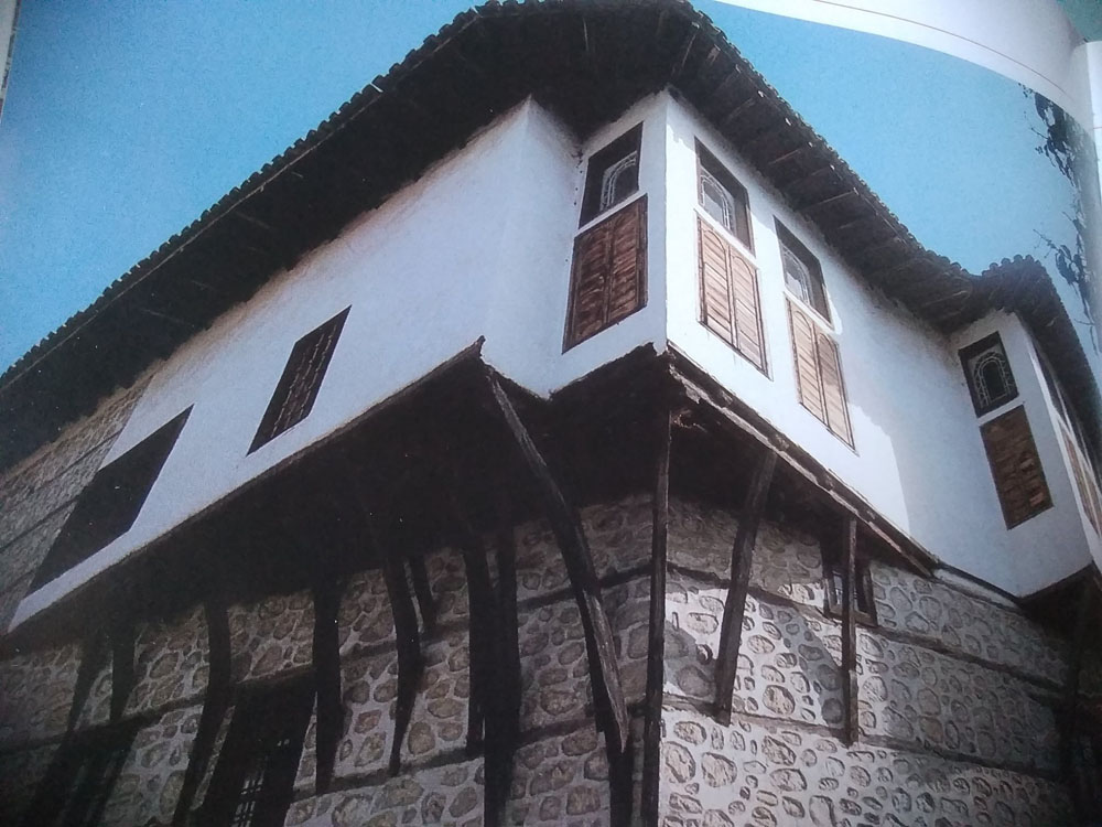 Αρχοντικό Μπασσάρα. Περιοχή Ντολτσό. Ο ηλιακός οντάς, το λεγόμενο ξεβγαλτό ή σαχνισί (περσικός όρος σημαίνει το δωμάτιο του βασιλιά, του σάχη) στηρίζεται , θα έλεγα, ζυγιάζεται σε ένα λιθοδομημένο τοιχίο. Πρόκειται για μοναδική στα Βαλκάνια λύση.