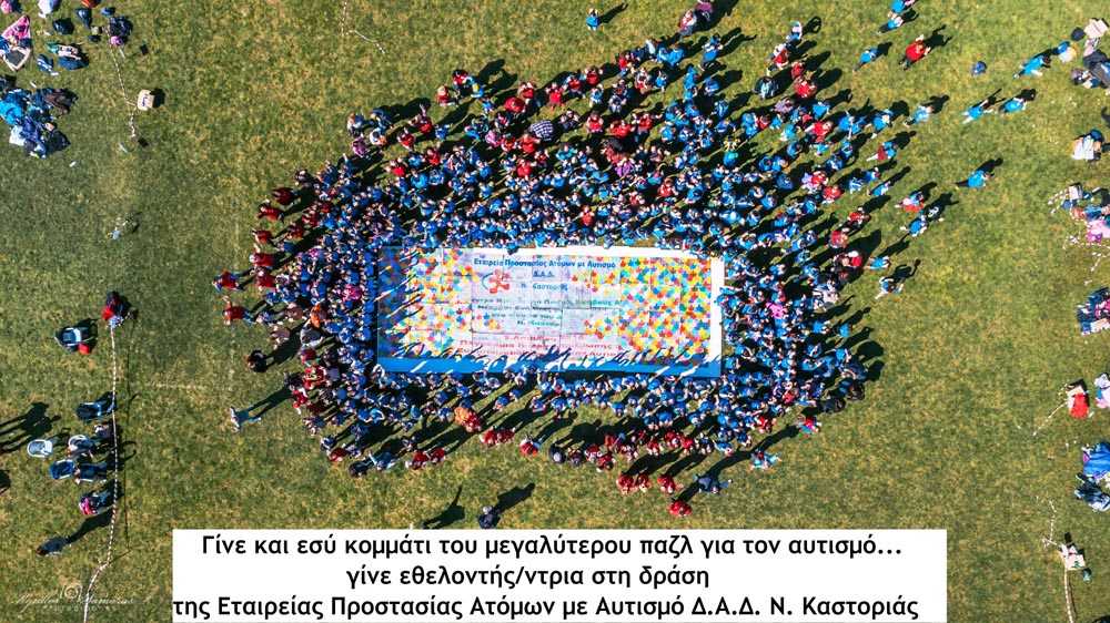 Μετά την επιτυχημένη διοργάνωση την περσινή χρονιά, η Εταιρεία Προστασίας Ατόμων με Αυτισμό Δ.Α.Δ. Ν. Καστοριάς στοχεύει να δημιουργήσει για δεύτερη φορά ένα μεγάλο παζλ ενώνοντας πολλά μικρότερα κομμάτια παζλ, αυτή τη φορά απευθυνόμενη σε όλα τα σχολεία Α/θμιας Εκπαίδευσης της Δυτικής Μακεδονίας, εμπνευσμένο από την διαφορετικότητα των ατόμων που ανήκουν στη διαταραχή αυτιστικού φάσματος με τον τίτλο «Το παζλ του αυτισμού … ενώνει την Δυτική Μακεδονία».