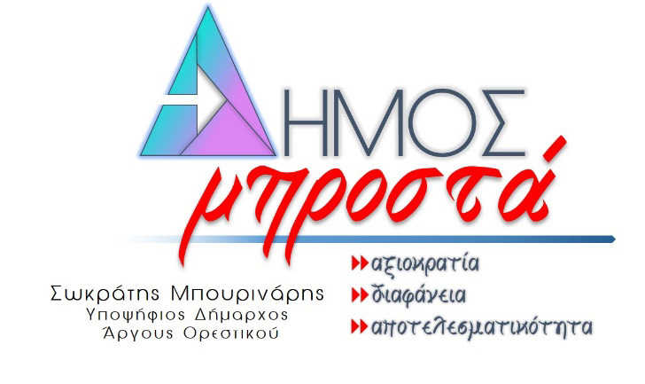 Με την παρούσα σας γνωστοποιούμε την ονομασία και το λογότυπο του συνδυασμού μας «Δήμος Μπροστά» για τον Δήμο Άργους Ορεστικού με επικεφαλής Υποψήφιο Δήμαρχο τον Σωκράτη Μπουρινάρη, καθώς και τα πρώτα ονόματα υποψηφίων δημοτικών συμβούλων.