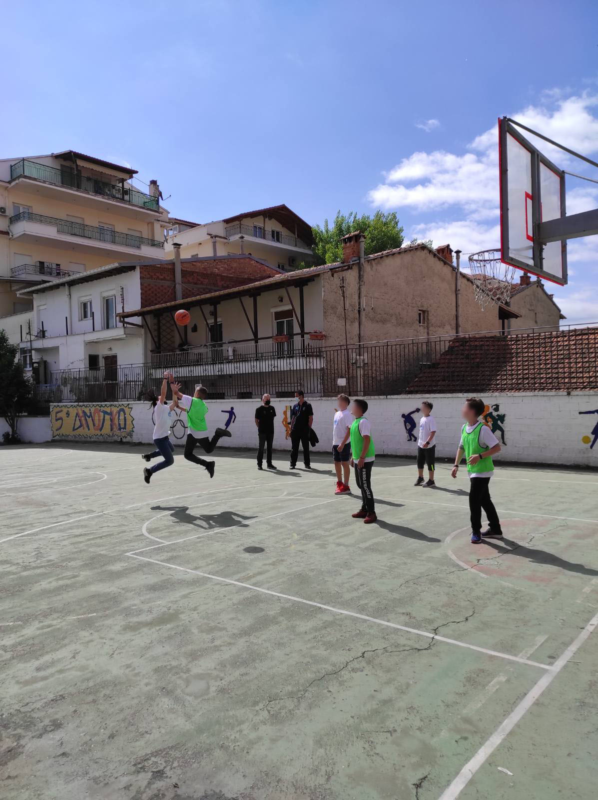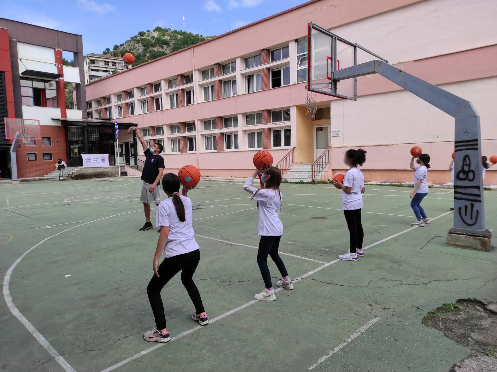 Έτσι λοιπόν την Δευτέρα 31/5/2021 δύο προπονητές της ομοσπονδίας καλαθοσφαίρισης ο κ. Θωμάς Χαρμπαλής και ο κ. Στέφανος Πέρκος παραβρέθηκαν στον προαύλιο χώρο του 5ου δημοτικού σχολείου και οργάνωσαν με επιτυχία την εκδήλωση. Τα παιδιά χωρίστηκαν σε ολιγομελή τμήματα και συνοδευόμενα από την γυμνάστρια του σχολείου απολαύσαν πολύ παιχνίδι και γυμναστική ενώ παράλληλα γνώρισαν και τις τεχνικές του μπάσκετ, μένοντας ενθουσιασμένα. Από τον Α.Σ. Καστοριάς είχαν τη χαρά να συμμετέχουν οι προπονητές Γιώργος Καραταγλίδης και Χριστόφορος Τερσενίδης οι οποίοι είχαν την δυνατότητα να παρουσιάσουν στα παιδιά τον όμορφο κόσμο του αθλήματος του μπάσκετ και να δώσουν χρόνο συμμετοχής στο παιχνίδι. Παράλληλα οι προπονητές του συλλόγου μας είχαν την ευκαιρία να ανταλλάξουν απόψεις με τους ομοσπονδιακούς προπονητές για αθλητικά θέματα και αποκόμισαν χρήσιμα συμπεράσματα. Στην εκδήλωση παραβρέθηκε η υπεύθυνη του γραφείου φυσικής αγωγής της πρωτοβάθμιας εκπαίδευσης Καστοριάς, η οποία είναι κοντά στο σύλλογο για κάθε συνεργασία. Πολύ ευχάριστο είναι το γεγονός ότι όλα τα παιδιά αγόρια και κορίτσια ευχαριστήθηκαν και διασκέδασαν πραγματικά μέσα από την γνωριμία του αθλήματος του μπάσκετ. Στα παιδιά που συμμετείχαν προσφέρθηκαν αναμνηστικά μπλουζάκια από τους εκπροσώπους της Ε.Ο.Κ..