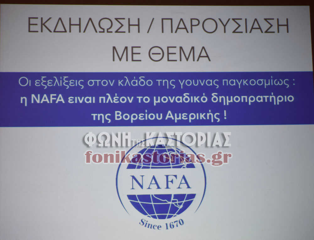 Στην εκδήλωση, που πραγματοποιήθηκε αργά το απόγευμα σήμερα σε αίθουσα του ξενοδοχείου «Limneon» παρουσία πλήθους γουνοποιών, ο αντιπρόεδρος σχέσεων της NAFA Χαράλαμπος Πούλιος, ενημέρωσε τους παρευρισκόμενους σχετικά με τη νέα ετικέτα Blackglama που απέκτησε πρόσφατα το δημοπρατήριο και η οποία θα είναι διαθέσιμη στη δημοπρασία που θα πραγματοποιηθεί από τις 26 Φεβρουαρίου έως τις 4 Μαρτίου.