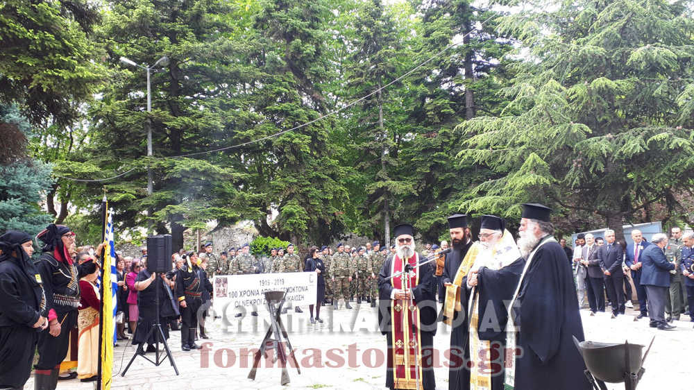 Το πρωί, τελέστηκε στον Ιερό Μητροπολιτικό Ναό Κοιμήσεως της Θεοτόκου αρχιερατική θεία λειτουργία χοροστατούντος του μητροπολίτη Καστοριάς Σεραφείμ και στη συνέχεια, εψάλλει επιμνημόσυνη δέηση στη μνήμη των 353.000 αθώων θυμάτων της τουρκικής θηριωδίας .