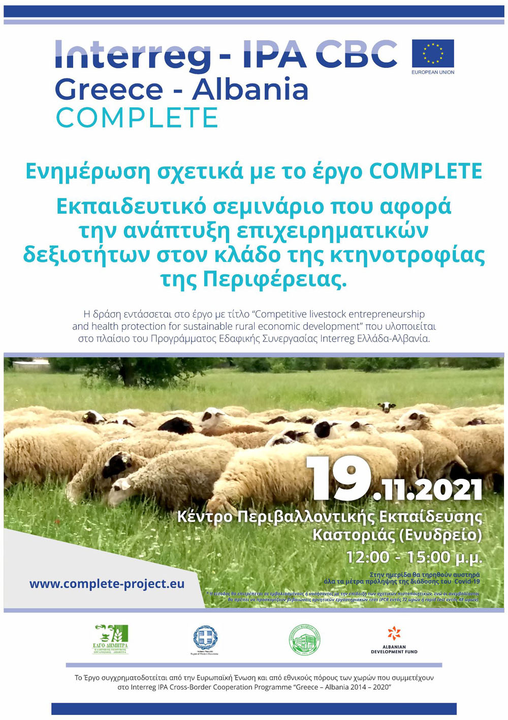 Εκπαιδευτικό σεμινάριο που αφορά την ανάπτυξη επιχειρηματικών δεξιοτήτων στον κλάδο της κτηνοτροφίας της Περιφέρειας