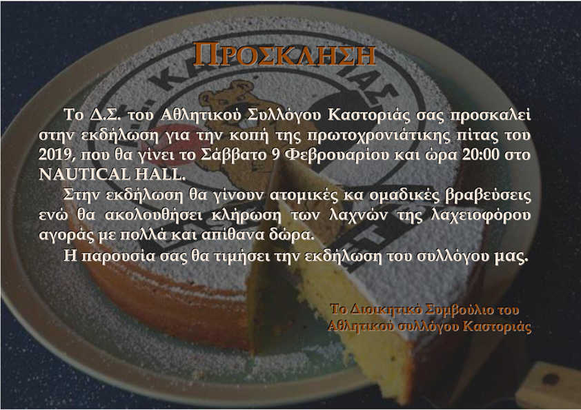 Ο Α.Σ. ΚΑΣΤΟΡΙΑΣ κόβει την βασιλόπιτά του