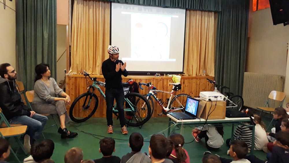 Ο  Πρόεδρος του Ποδηλατικού Συλλόγου Καστοριάς κ. Βασιλείου Δημήτρης και ο Γραμματέας κ. Παναγιωτίδης Νίκος επισκέφτηκαν το σχολείο μας και μίλησαν στους μαθητές για τα οφέλη του αθλήματος, για την ασφάλεια και την προστασία του ποδηλάτη. Έδειξαν τον ποδηλατικό εξοπλισμό, ενώ έμφαση δόθηκε στο κράνος που πρέπει όλοι οι ποδηλάτες να φορούν. Τα παιδιά ενθουσιάστηκαν με την παρουσίαση και με τα ποδήλατα, και δήλωσαν χαρούμενα ότι θα αγοράσουν σίγουρα κράνος!