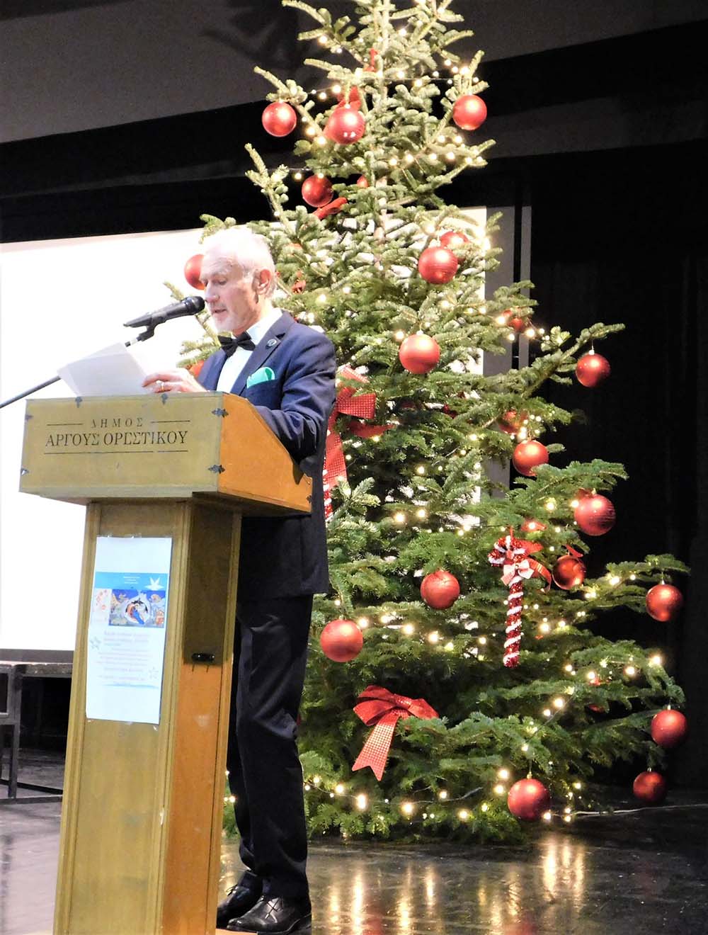 Στον χαιρετισμό του ο Πρόεδρος της Ορεστίδος Κωνσταντίνος Αδάμ ανέλυσε ευσύνοπτα το πραγματικό νόημα των Χριστουγέννων, αναφέροντας ότι… “Τα Χριστούγεννα είναι μια σειρά αλλεπάλληλων εορτών που είχαν παραμονές και μεθεόρτια, ήταν πλήρως και επαρκώς σχεδιασμένα. Κι όμως τα πήραμε και τα τεντώσαμε κι αρχίσαμε να τα γιορτάζουμε από τα μέσα Νοέμβριου. Γιατί τους αλλάξαμε χρήση. Δυστυχώς τα καταργήσαμε σαν κοινωνική θρησκευτική εορτή, και τα μετατρέψαμε σε μια γιορτή ευημερίας και καλοπέρασης. Επικράτησε ένας άκρατος καταναλωτισμός. Γεμίσαμε την γιορτή με σύμβολα κι αντικείμενα. Δέντρα, μπαλίτσες, φώτα, γλυκά, ψώνια, δώρα.