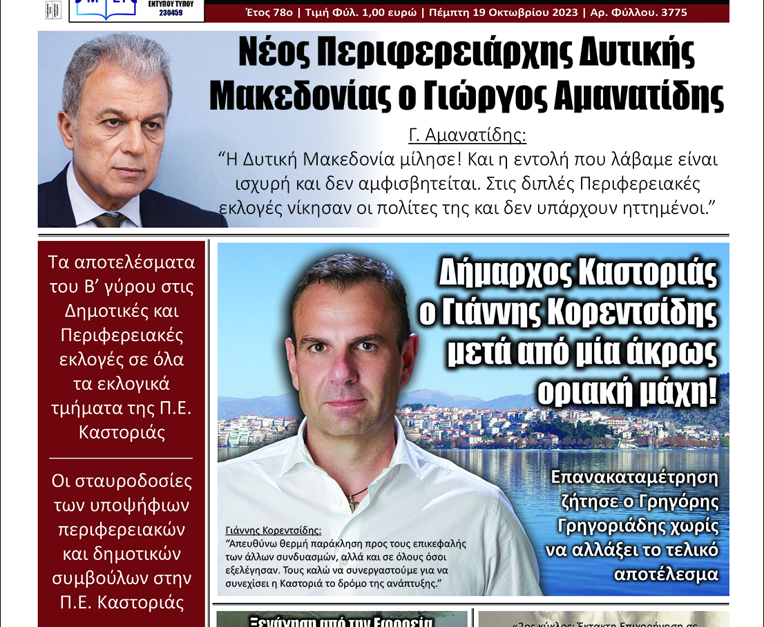 Το πρωτοσέλιδο της εφημερίδας μας “ΦΩΝΗ ΤΗΣ ΚΑΣΤΟΡΙΑΣ” | 19-10-2023