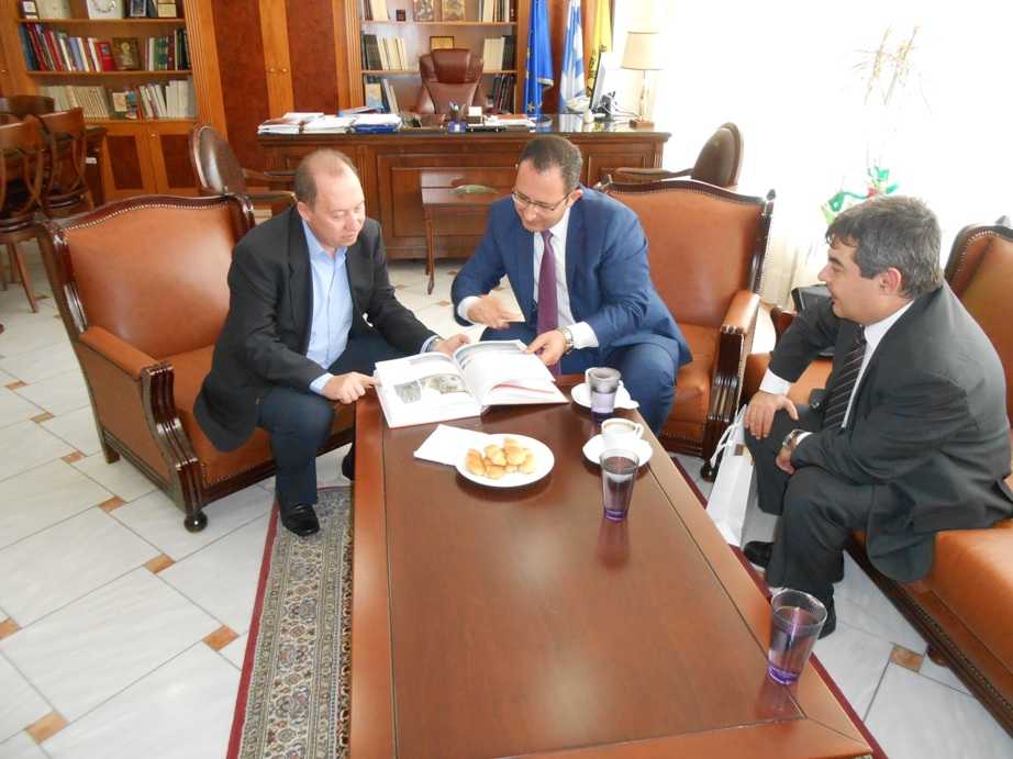 Ο κ. Αδαμόπουλος καλωσόρισε τον Τούρκο Πρόξενο στο γραφείο του και ακολούθησε γόνιμη συζήτηση για τη δυνατότητα διαπολιτισμικής, τουριστικής και εμπορικής συνεργασίας, όσον αφορά την τυποποίηση και εξαγωγή τοπικών αγροτικών προϊόντων, αλλά και την ενδεχόμενη επενδυτική κίνηση τούρκων επιχειρηματιών στην περιοχή.