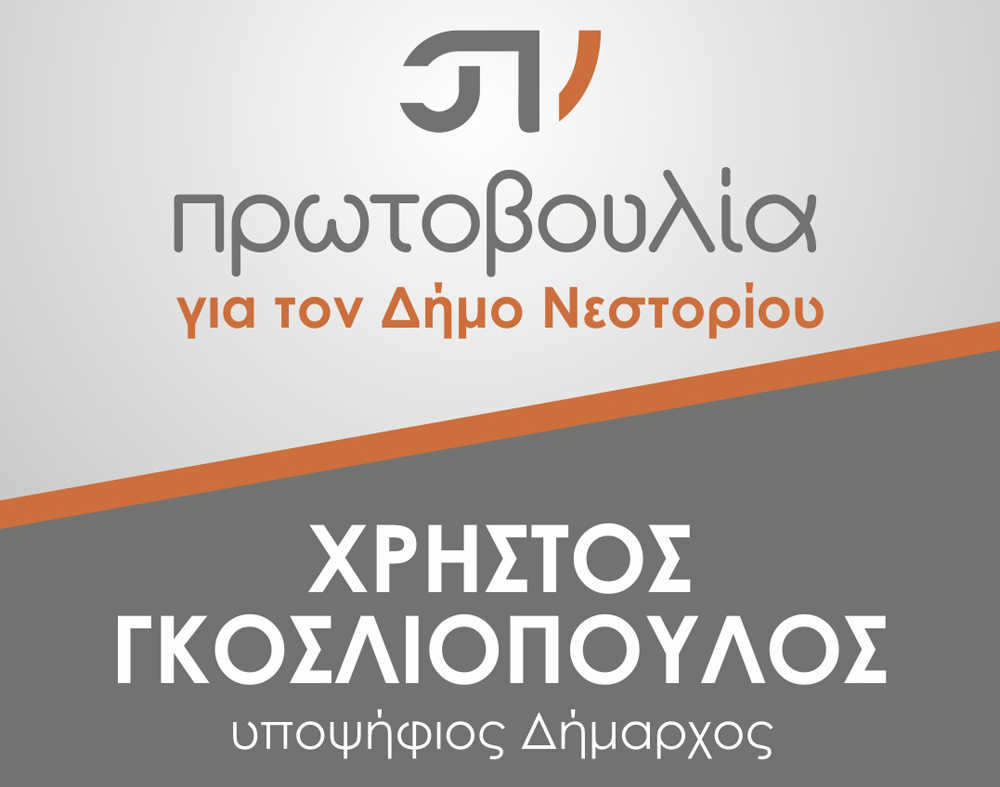 Ενόψει των επικείμενων δημοτικών εκλογών της 26ης Μαΐου 2019, επιθυμώ να σας ενημερώσω ότι ο συνδυασμός «Πρωτοβουλία για τον Δήμο Νεστορίου», του οποίου έχω την τιμή να είμαι επικεφαλής ως υποψήφιος Δήμαρχος Νεστορίου στον ομώνυμο Δήμο της Π.Ε. Καστοριάς, είναι ανεξάρτητος, υπερκομματικός και δεν έχει αποδεχθεί χρίσμα ή στήριξη από κανένα κόμμα.
