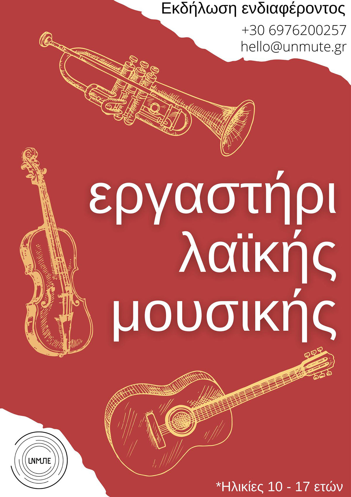 «εργαστήρι λαϊκής μουσικής» για ηλικίες 10 – 17 ετών!