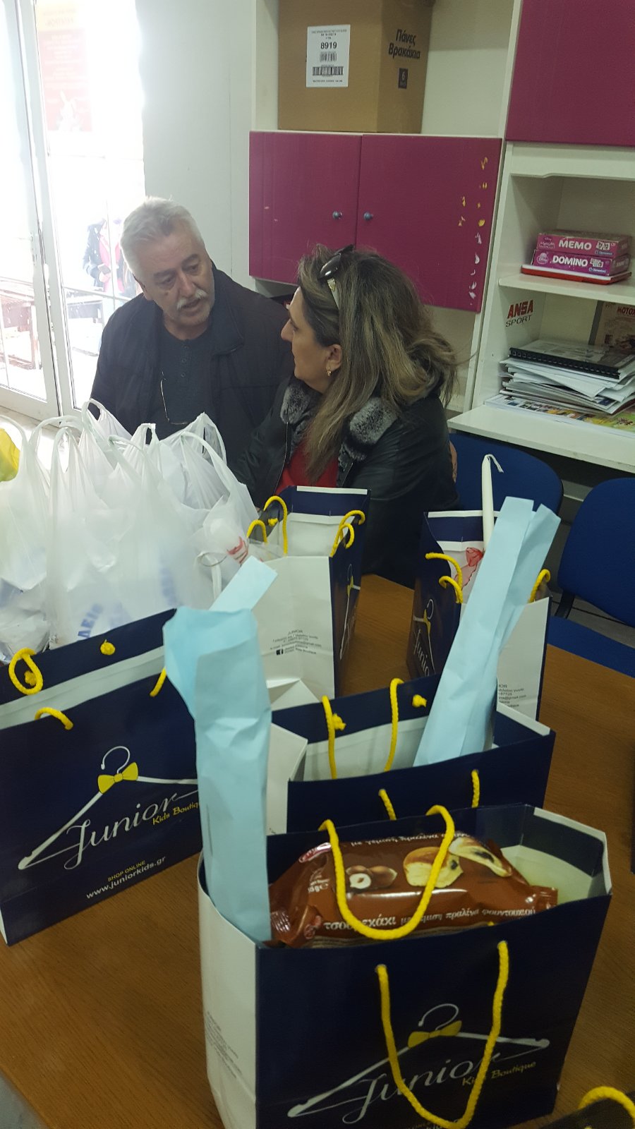 Για ακόμα μια χρονιά , με τις συγκινητικές προσφορές τους σε χρήματα, τρόφιμα , παιχνίδια και σε εθελοντική εργασία, κάλυψαν ένα μεγάλο μέρος των αναγκών,80 ευάλωτων κοινωνικά οικογενειών με 150 ανήλικα παιδιά (πολύτεκνες, τρίτεκνες, με προβλήματα υγείας, γονείς ανέργους η περιστασιακά εργαζόμενους), στα πλαίσια της Δράσης <<Γίνε Νονός και εσύ αυτό το Πάσχα>>του προγράμματος<< Ηλιαχτίδα Ζωής>>, και 50 οικογένειες ηλικιωμένων με προβλήματα υγείας, με συνολικά 67 ωφελούμενους υπερήλικες, του προγράμματος<< Φροντίδα για την Τρίτη Ηλικία >>.