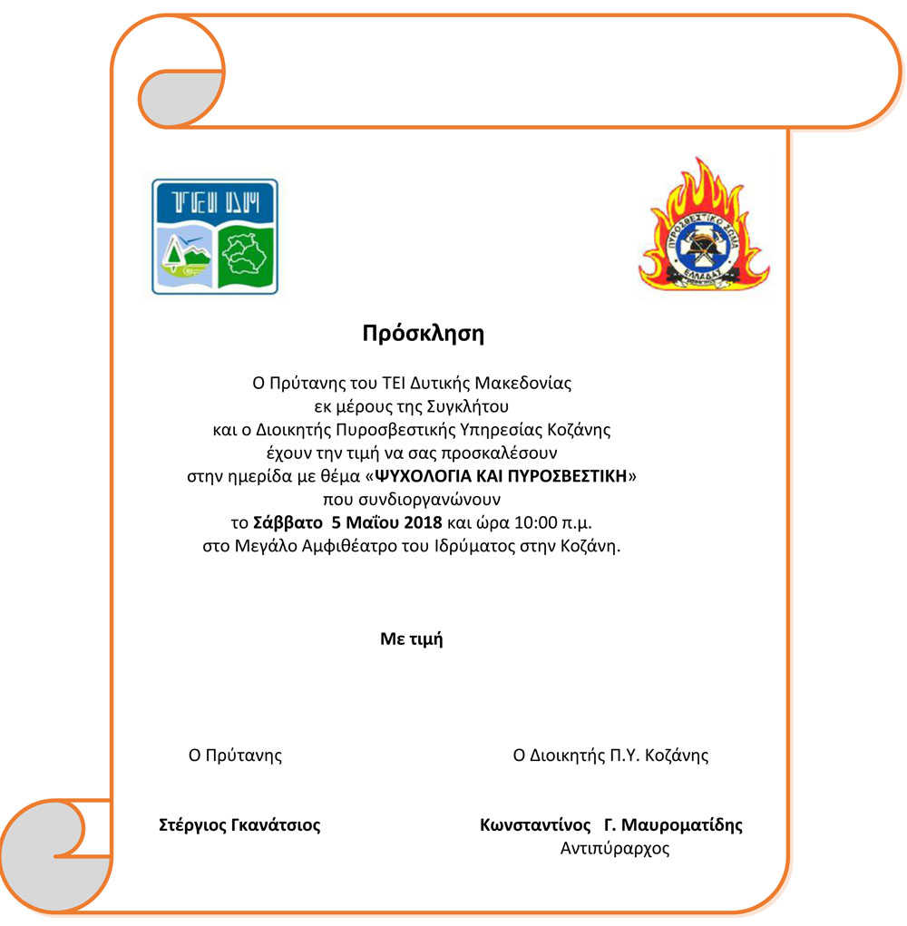 Ημερίδα με θέμα: «ΨΥΧΟΛΟΓΙΑ ΚΑΙ ΠΥΡΟΣΒΕΣΤΙΚΗ», θα πραγματοποιηθεί το Σάββατο 5 Μαΐου