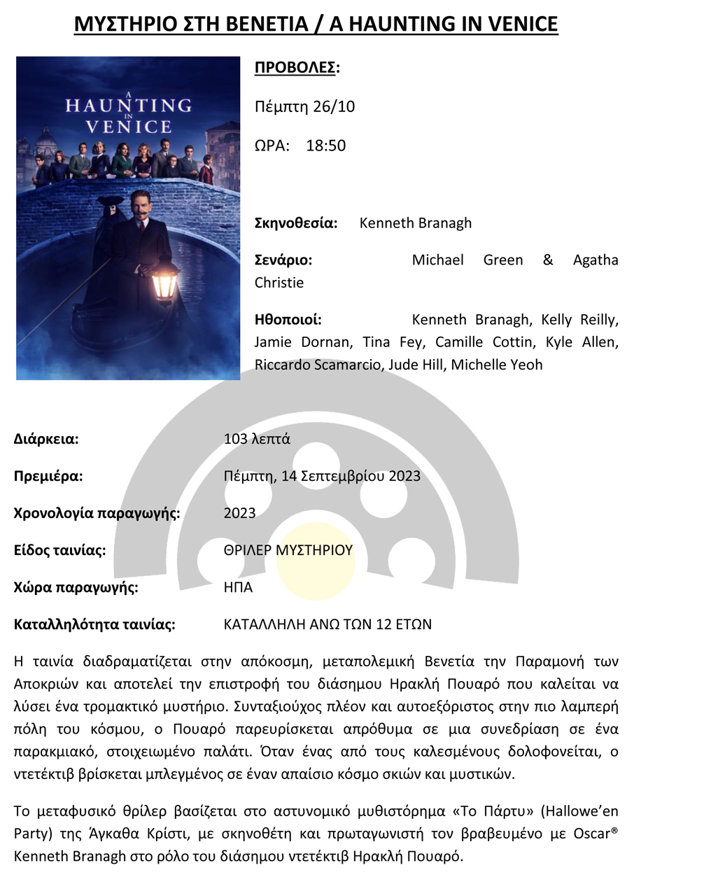 Την Πέμπτη 26 Οκτωβρίου θα δούμε ταινίες δράσης, κωμωδίες, δραματικές ταινίες και θρίλερ με ενιαία τιμή εισιτηρίου 2€, στον κινηματογράφο της επιλογής μας, σε όλη την Ελλάδα.