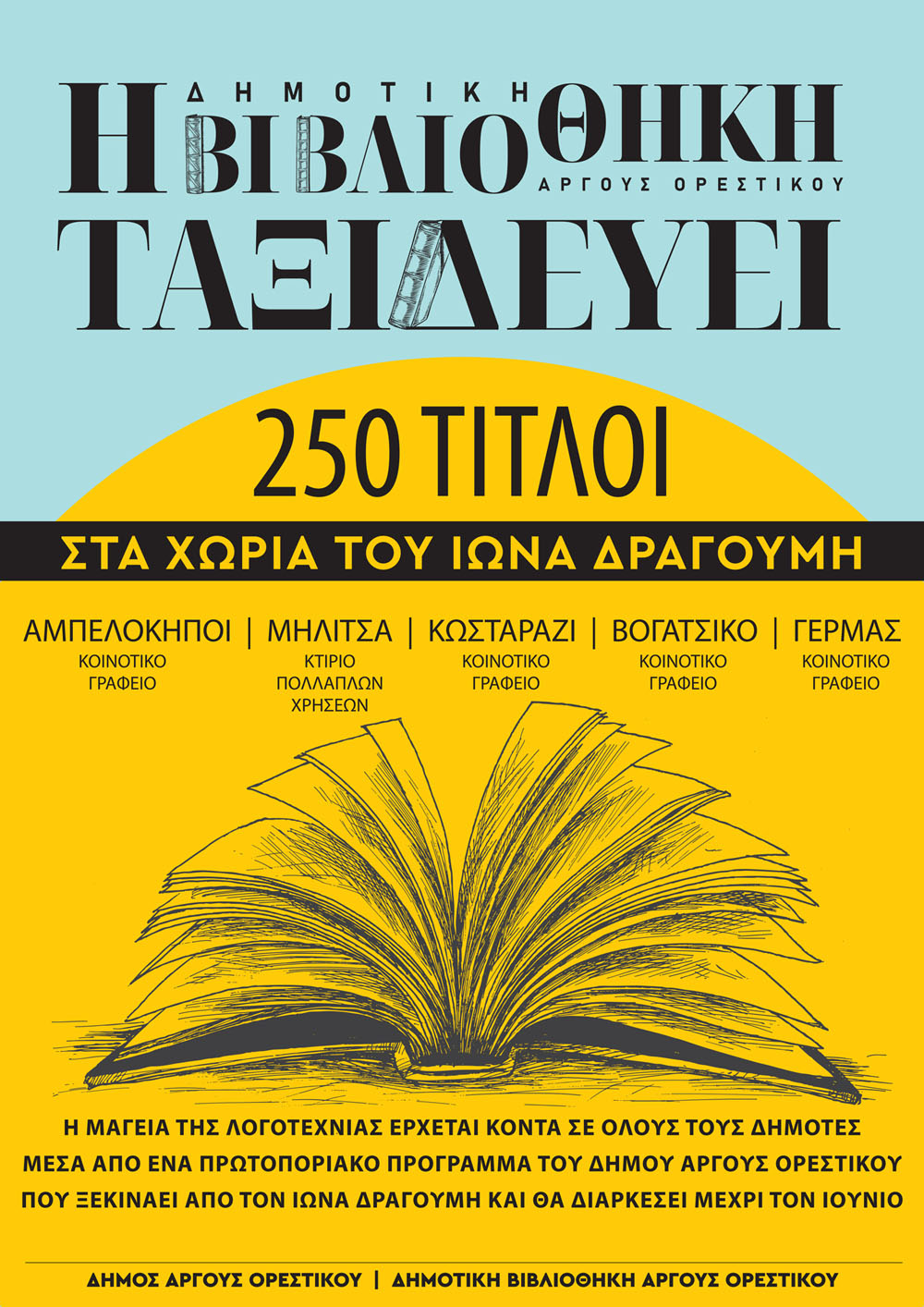 Ο Δήμος Άργους Ορεστικού σε συνεργασία με τη Δημοτική Βιβλιοθήκη του Δήμου υλοποιεί μια καινοτόμο πρωτοβουλία με στόχο την προώθηση της λογοτεχνίας και τη διάδοση του πνεύματος της ανάγνωσης.