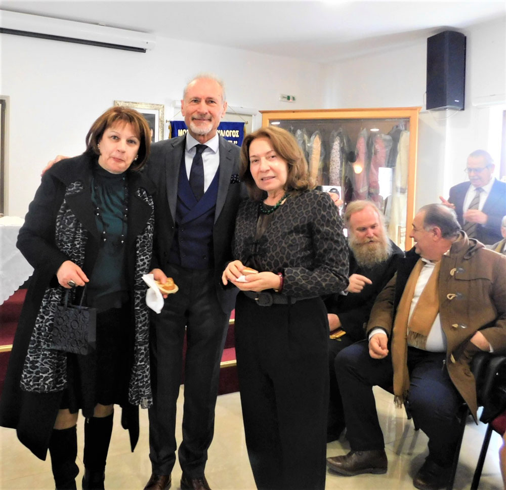 Τέλος στον χαιρετισμό της η Αγγέλα Δούμα, την οποία θερμά ευχαριστούμε για την παρουσία και το δώρο της,  τόνισε την χαρά της που βρίσκεται σήμερα κοντά μας, επανέλαβε την ικανοποίησαν της για τις δραστηριότητες που αναπτύσσει ο σύλλογος στο κτήριο της δωρεάς του αειμνήστου συζύγου της Ιατρού Δαμιανού Δούμα, ενώ παρουσίασε και το δώρο που προσφέρει στον/στην τυχερή της Κοπής της Βασιλόπιτας το οποίο για φέτος ήταν ένα πολύτιμο “έθνικ” κολιέ”