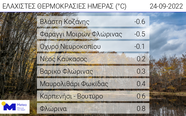 Θερμοκρασίες κάτω από το μηδέν το πρωί του Σαββάτου 24/9 σε περιοχές της Μακεδονίας