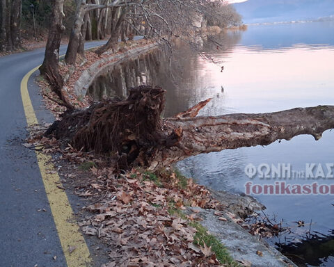 Πηγαίνοντας για την Μαυριώτισσα και λίγο πρίν την “Σπηλιά του Δράκου”, ένα πλατάνι έχει ξεριζωθεί, «τινάζοντας»