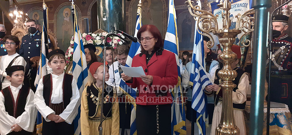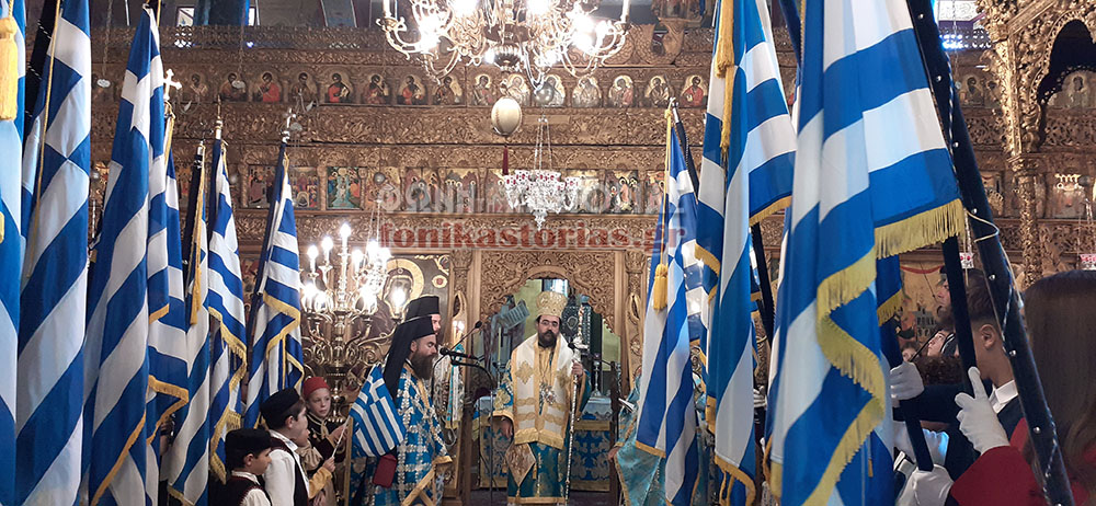 Το πρωΐ, πραγματοποιήθηκε Όρθρος και Μεγάλη Πανηγυρική Θεία Λειτουργία στον Μητροπολιτικό μας Ναό, ιερουργούντος του Σεβ. Μητροπολίτη Καστοριάς κ. Καλλινίκου και στη συνέχεια, επίσημη Δοξολογία και εκφώνηση του Πανηγυρικού της Ημέρας, από την εκπαιδευτικό του 4ου Δημοτικού Σχολείου Καστοριάς κα Αλίκη Καζταρίδου.