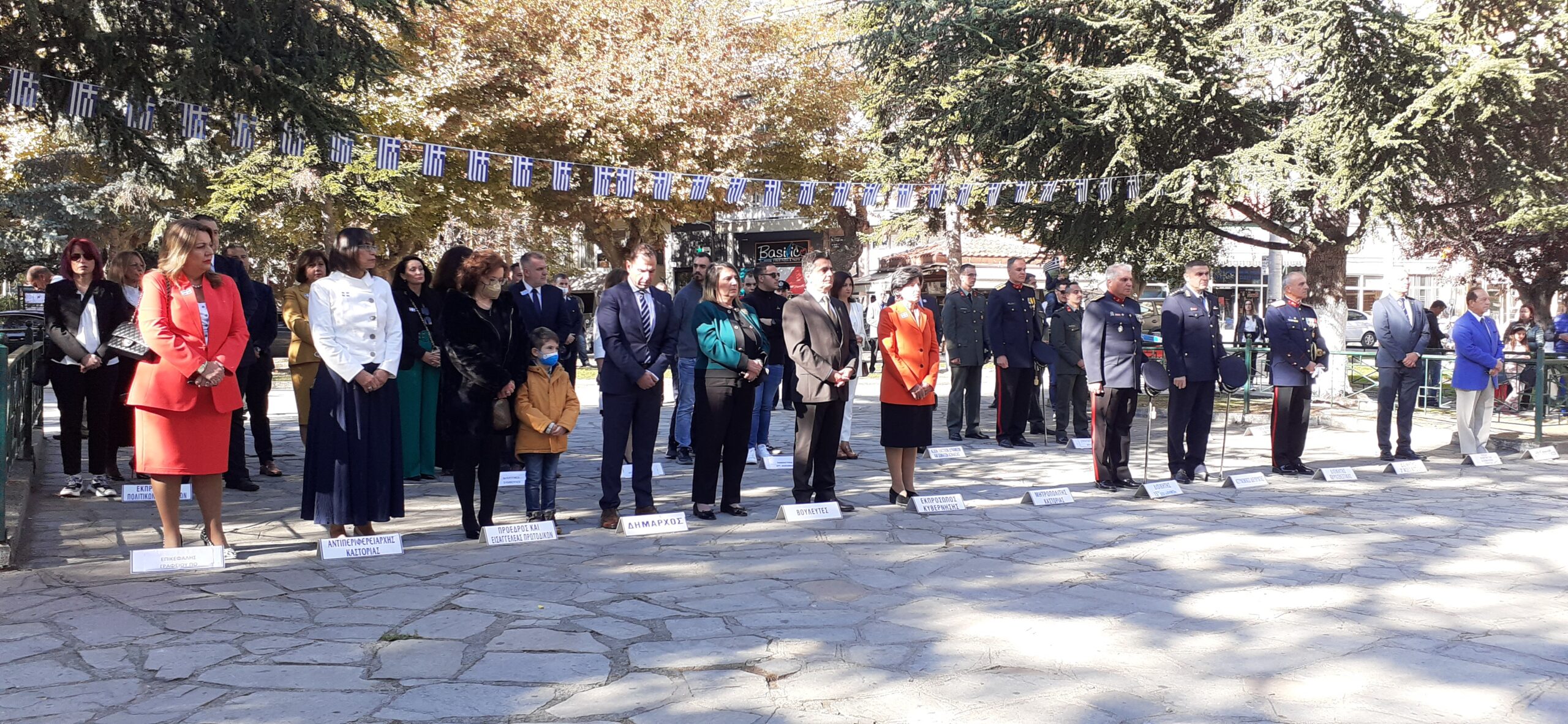 Ακολούθησε τέλεση Επιμνημόσυνης Δέησης στο Μνημείο των Πεσόντων στην πλατεία Μακεδονομάχων, κατάθεση στεφάνων, τήρηση ενός λεπτού σιγή και ανάκρουση του Εθνικού μας Ύμνου.