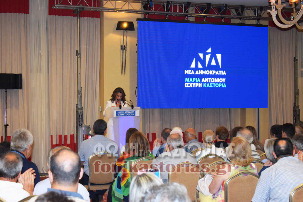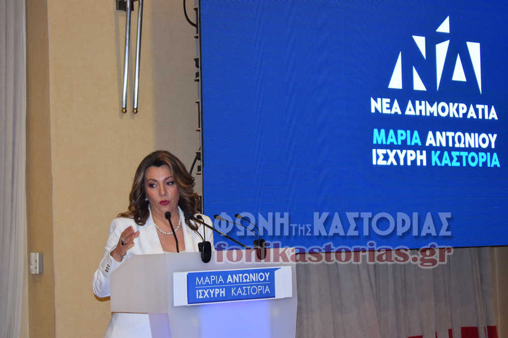 Τον λόγο πήρε αμέσως μετά η κ. Αντωνίου η οποία στην ομιλία της άσκησε δριμύτατη κριτική στην κυβέρνηση. Παράλληλα, αναφέρθηκε στους στόχους της Νέας Δημοκρατίας, αλλά και στο όραμά της και τους στόχους της για την αυριανή Καστοριά.
