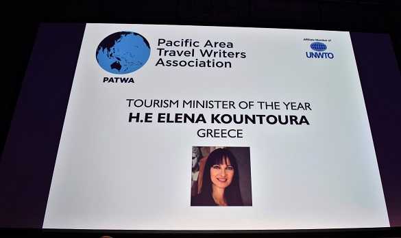Με το βραβείο της καλύτερης Υπουργού Τουρισμού παγκοσμίως βραβεύτηκε η Υπουργός Τουρισμού, κα Έλενα Κουντουρά, στον καταξιωμένο διεθνή θεσμό PAΤWA International Awards που πραγματοποιήθηκε στο Βερολίνο στο πλαίσιο της κορυφαίας διεθνής έκθεσης τουρισμού ITB.