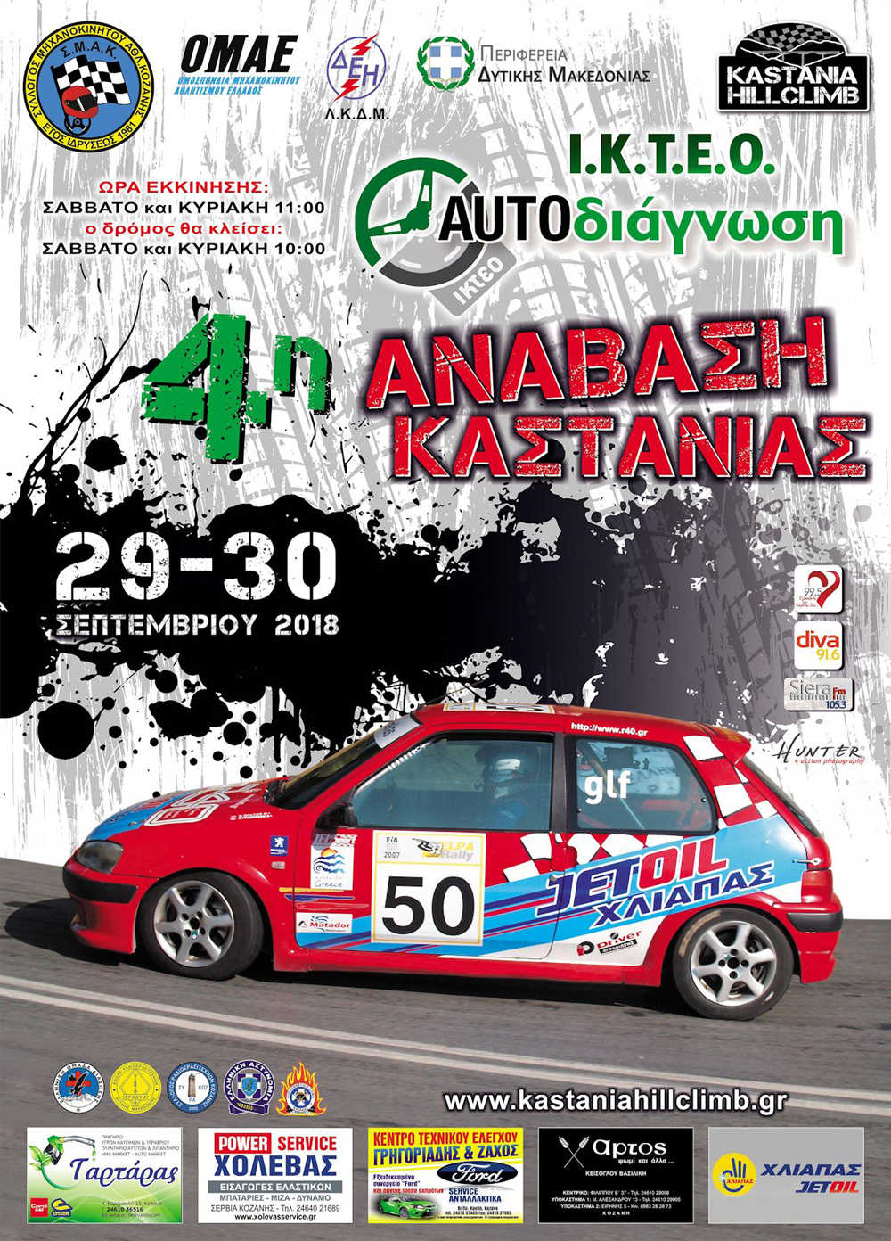 Συνδιοργανωτής του αγώνα για άλλη μια χρονιά είναι η Περιφέρεια Δυτικής Μακεδονίας ενώ μαζί μας όπως πάντα η φιλόξενη τοπική κοινότητα Πολύμυλου Κοζάνης. Μέγας χορηγός είναι το ΙΚΤΕΟ ΑΥΤΟΔΙΑΓΝΩΣΗ στα Μελίσσια Κοζάνης και το Λιγνιτικό Κέντρο Δυτικής Μακεδονίας ΔΕΗ. Σταθεροί χορηγοί των διοργανώσεων μας είναι οι επιχειρήσεις Kαύσιμα ΤΑΡΤΑΡΑΣ, Εξειδικευμένο Συνεργείο ΓΡΗΓΟΡΙΑΔΗΣ-ΖΑΧΟΣ, ΧΛΙΑΠΑΣ Jet Oil, Άρτος ψωμί & άλλα, Power Service ΧΟΛΕΒΑΣ.