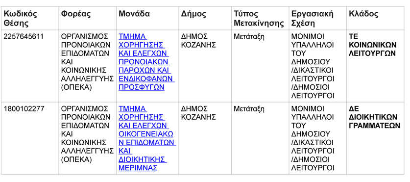 Συγκεκριμένα για την Περιφερειακή Δ/νση ΟΠΕΚΑ ΔΥΤΙΚΗΣ ΜΑΚΕΔΟΝΙΑΣ με έδρα την Κοζάνη, δύο (2) θέσεις :