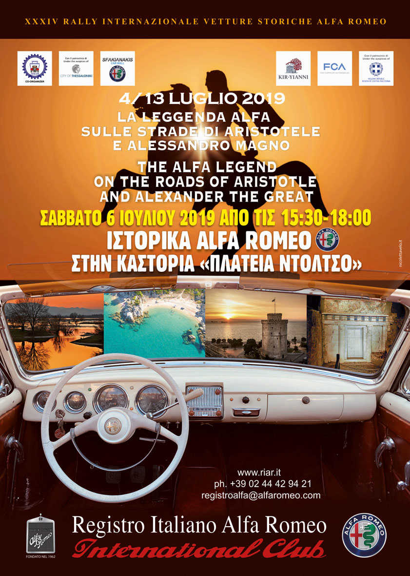 Το διάστημα από την Παρασκευή 5 Ιουλίου έως την Κυριακή 7 Ιούλιου 2019 θα βρίσκονται στην πόλη της Καστοριάς περίπου 30 ιστορικά αυτοκίνητα Alfa Romeo μαζί με τα πληρώματα τους όπου και θα διανυκτερεύσουν. Πρόκειται για τα πιο αξιόλογα αυτοκίνητα της μάρκας με χρονολογία παραγωγής από την δεκαετία του 1920 έως και την δεκαετία του 1970 και στην πλειοψηφία τους θα έρθουν από την Ιταλία.