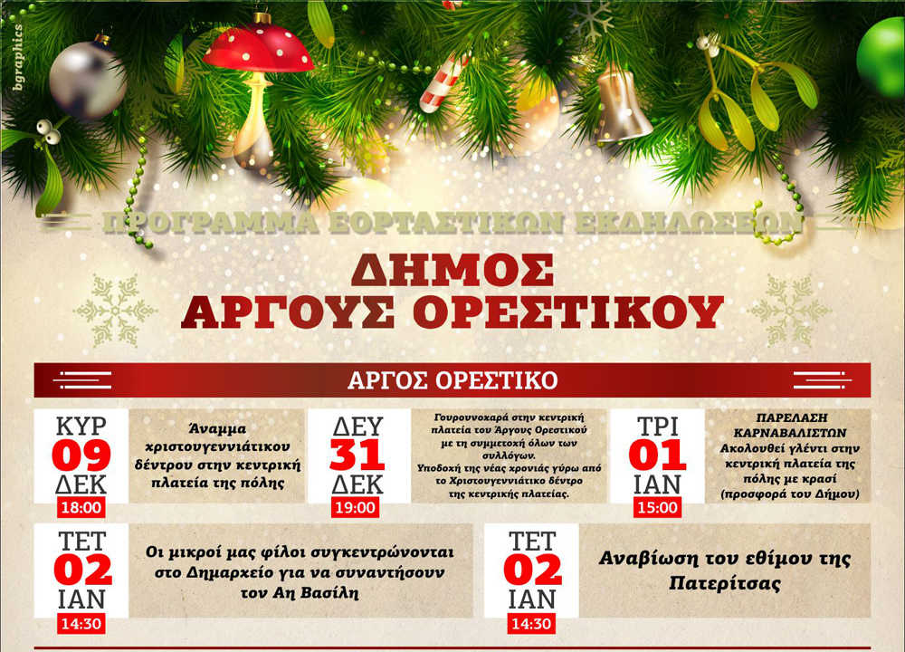21,27,28/12/2018 & 3,4,9,10/01/2019 εντός του πρωινού ωραρίου λειτουργίας των Υποκ/των.
