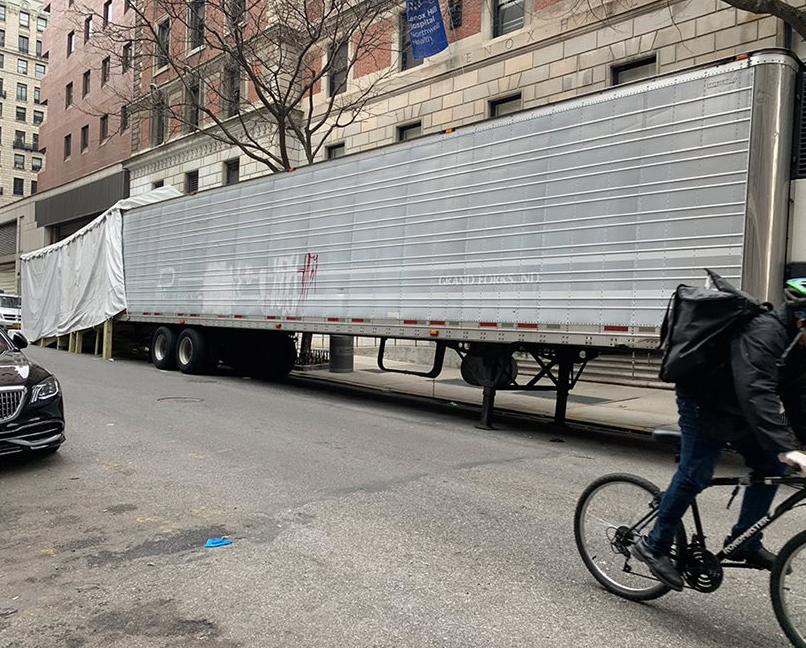 Οι παλμοί χτυπούν ακόμη πιο δυνατά στο θέαμα που αντικρίζει κανείς μέσα και έξω από κεντρικά νοσοκομεία της Νέας Υόρκης. Σχεδόν σε κάθε μεγάλο νοσοκομείο της πολιτείας, στον εξωτερικό χώρο, στήνονται νεκροτομεία, γεγονός που μαρτυρά την απόλυτη φρίκη.