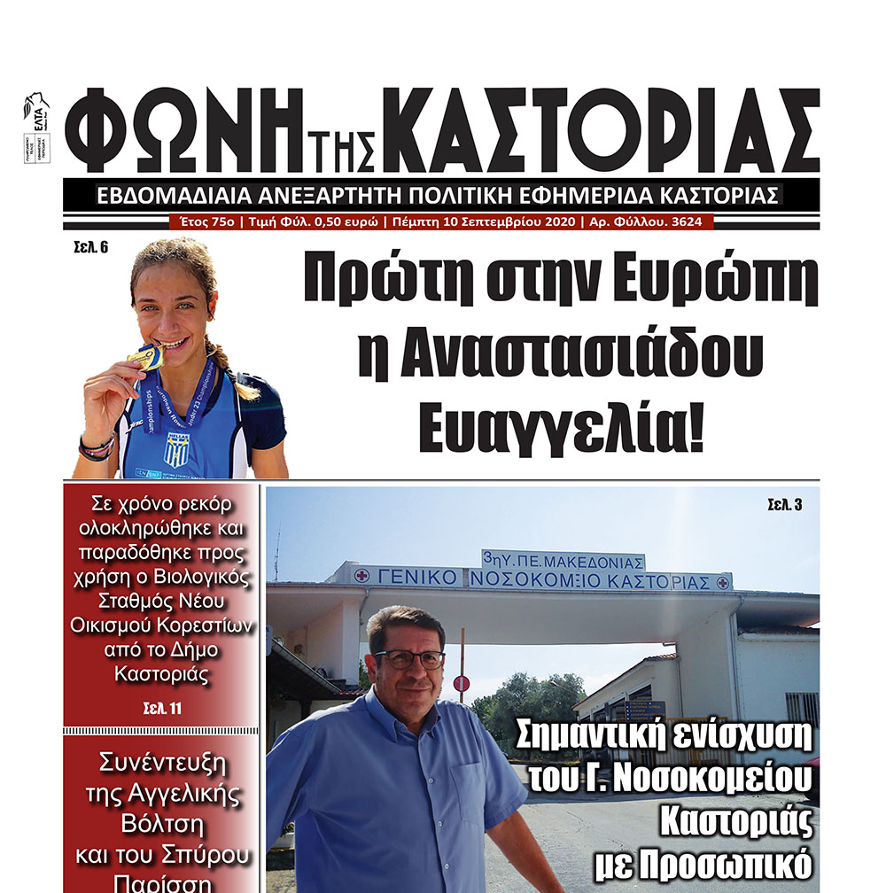 Το πρωτοσέλιδο της εφημερίδας μας “ΦΩΝΗ ΤΗΣ ΚΑΣΤΟΡΙΑΣ” | 10 / 09 / 2020