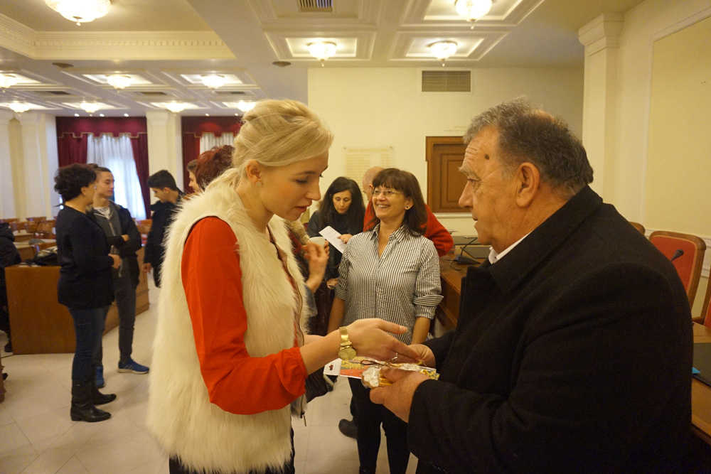 Ο Δήμαρχος καλωσόρισε τους εκπαιδευτικούς και τους μαθητές στον δήμο Καστοριάς και αναφέρθηκε στην σπουδαιότητα του προγράμματος Erasmus+ που φέρνει σε επικοινωνία μαθητές από διάφορες χώρες της Ευρώπης ώστε να ανταλλάξουν εμπειρίες, να γνωρίσουν τα ιδιαίτερα χαρακτηριστικά των περιοχών που επισκέπτονται και ειδικά για τον τόπο μας θα έχουν την ευκαιρία να γνωρίσουν τον περιβαλλοντικό πλούτο της περιοχής μας, την λίμνη της Καστοριάς, τα μνημεία, τον πολιτισμό, την ιστορία, τα ήθη και έθιμα.