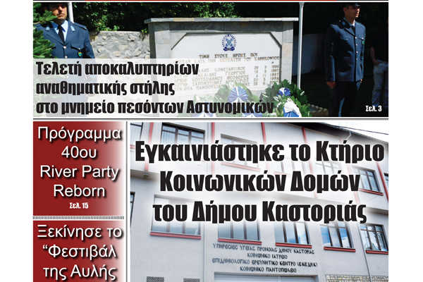 Το πρωτοσέλιδο της εφημερίδας μας “ΦΩΝΗ ΤΗΣ ΚΑΣΤΟΡΙΑΣ” | 5 / 7 / 18