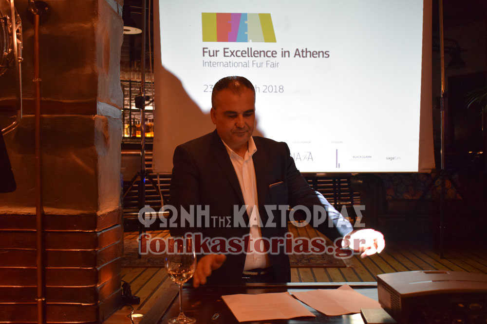 Την εκδήλωση άνοιξε με ομιλία του ο Πρόεδρος του ΣΕΓ Αθανάσιος Μαλεγκάνος ο οποίος αναφέρθηκε στην οργάνωση και στα χαρακτηριστικά της 8ης Διεθνούς Έκθεσης Γούνας της Αθήνας. Στη συνέχεια τον λόγο πήρε ο επί πολλά έτη συνεργάτης του ΣΕΓ, δημιουργός, σχεδιαστής και ιστορικός μόδας, Βασίλης Καρδάσης, ο οποίος αναφέρθηκε στην κατασκευή του ενδύματος που θα χρησιμοποιηθεί στην διαφημιστική καμπάνια για την προώθηση της Διεθνούς Εκθέσεως Γούνας «Fur Excellence in Athens» – 2018, καθώς και στην συνεργασία του με την εξειδικευμένο τεχνίτη γούνας – μοντελίστ Ηλία Ρέββα .