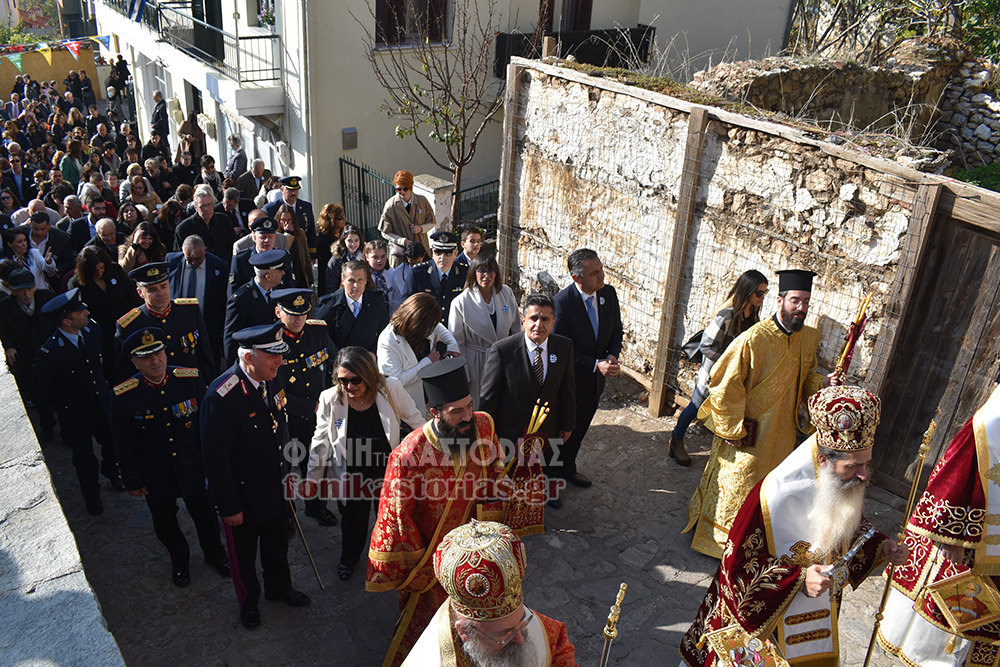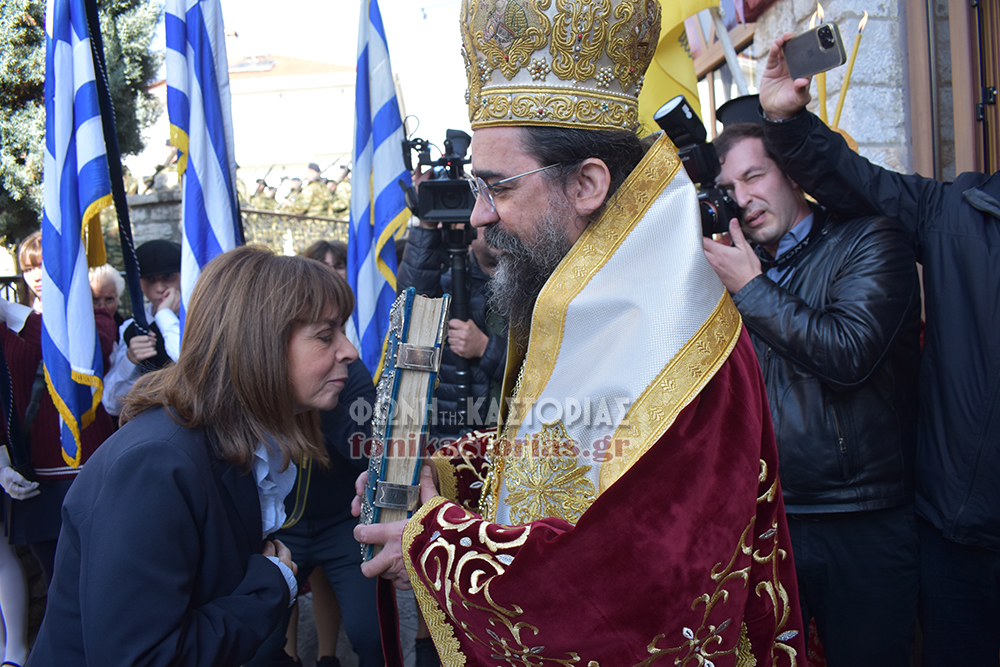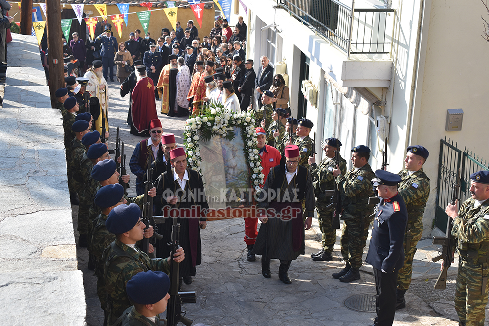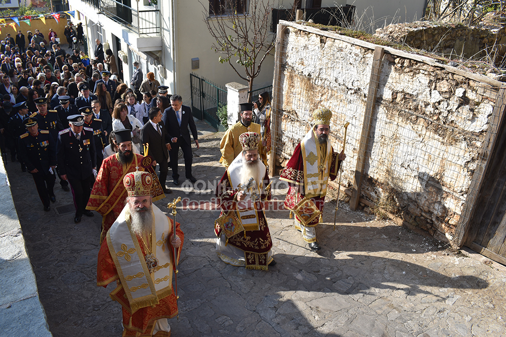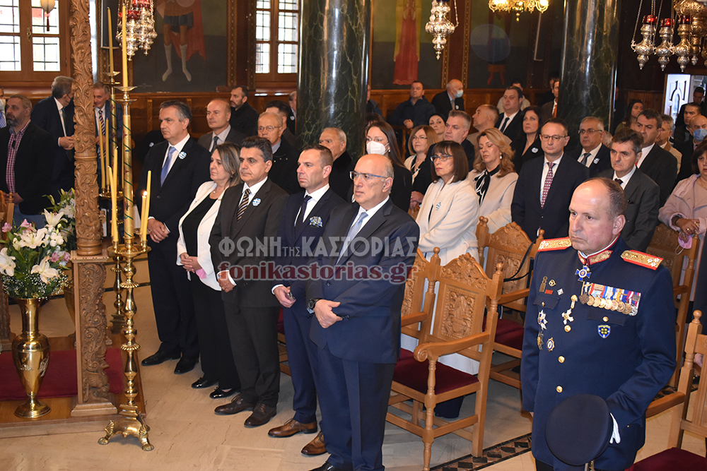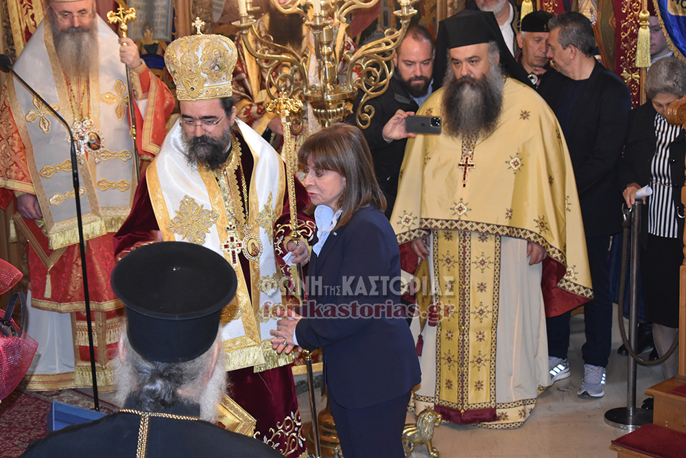 Το πρωΐ τελέστηκε πολυαρχιερατική Θεία Λειτουργία στον Ι. Ν. Του Αγίου Μηνά και Λιτάνευση της Ιερής Εικόνας του Αγίου και των Τιμίων λειψάνων Αυτού στον Μητροπολιτικό μας Ναό, όπου εκεί, παρουσία της Προέδρου της Δημοκρατίας κας Κατερίνας Σακελλαροπούλου, του Υφ. Υποδομών & Μεταφορών Μιχάλη Παπαδόπουλου που εκπροσώπησε την Κυβέρνηση, των Σεβ. Μητροπολιτών Περιστερίου κ. Γρηγορίου & Φθιώτιδας κ. Συμεών, λοιπών πολιτικοστρατιωτικών αρχών και κόσμου, τελέστηκε επίσημη Δοξολογία, προσφώνηση από τον Σεβ. Μητροπολίτη μας κ. Καλλίνικο και προσφορά δώρων στην κα Σακελλαροπούλου και εκφώνηση του πανηγυρικού της Ημέρας από την συνταξιούχο εκπαιδευτικό και μέλος του Δ.Σ. του συλλόγου «Φίλοι Μουσείου Μακεδονικού Αγώνα Νομού Καστοριάς» κα. Σόνια Ευθυμιάδου.