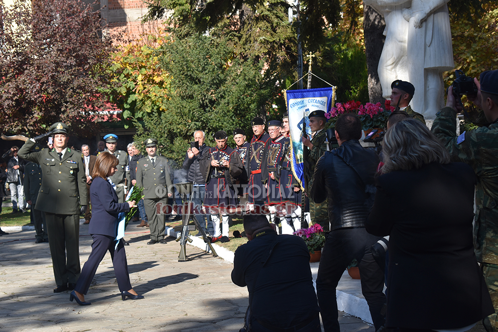 Στη συνέχεια πραγματοποιήθηκε Επιμνημόσυνη Δέηση στο Ηρώο Πεσόντων στην Πλ. Μακεδονομάχων και κατάθεση στεφάνου από την κα Σακελλαροπούλου.