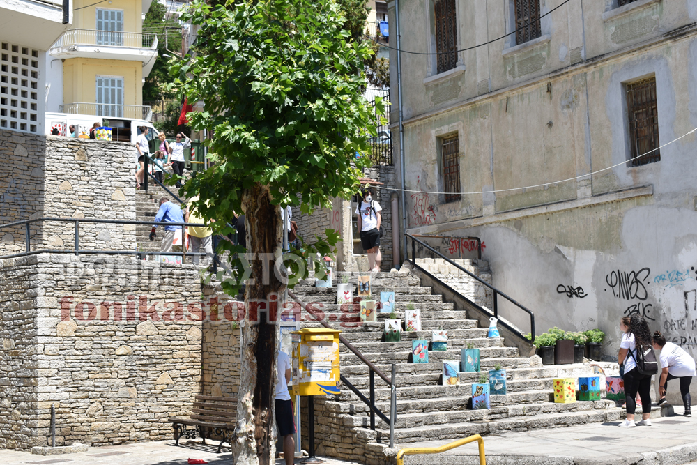 Καλλωπισμός του σκαλόδρομου επί της 11ης Νοεμβρίου (δίπλα στην Εθνική Τράπεζα), είναι η δεύτερη δράση της συλλογικής κίνησης <Στηρίζω την Καστοριά> που αυθόρμητα δημιουργήθηκε στη διάρκεια του εγκλεισμού λόγω κορωνοϊού.