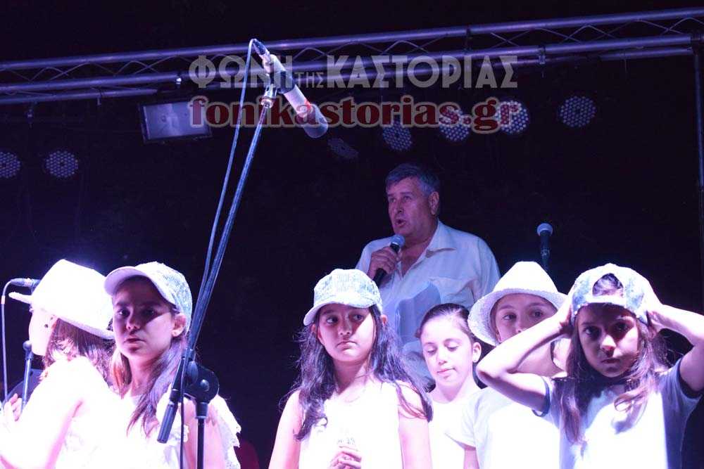 Την αυλαία άνοιξαν οι παιδική και η εφηβική χορωδία του Πολιτιστικού Συλλόγου Καστοριάς «Βασίλειος Δόϊκος». Τα παιδιά με τις αγγελικές φωνές τους καθήλωσαν το κοινό. Τις χορωδίες διηύθυνε η μαέστρος Ναταλία Σερόβα Χωλοπούλου.