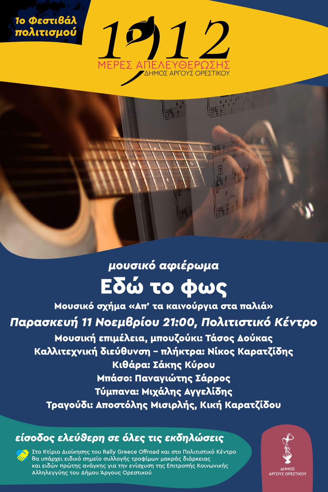 Οι Μέρες Απελευθέρωσης συνεχίζονται σήμερα Παρασκευή 11 Νοεμβρίου στις 21:00 στο Πολιτιστικό Κέντρο με το ξεχωριστό μουσικό αφιέρωμα «Εδώ το φως»!