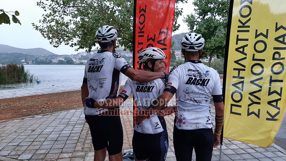 Οι ποδηλάτες (Βασιλική Βουτζαλή, Γιάννης Ευθυμίου, Βασίλης Κόρδας, Σταύρος Σούμας και Στέφεν Στράϊκ) μετά από δύσκολες καιρικές συνθήκες, έφθασαν σήμερα το απόγευμα στην Καστοριά από την Ηγουμενίτσα, μέσω Κοτύλης. Όλη η αποστολή, μαζί με τους συνοδούς, θα διανυκτερεύσουν σήμερα στην πόλη μας και αύριο θα αναχωρήσουν για την Θεσ/νίκη, με τελικό προορισμό τον Ιερό Βράχο της Ακρόπολης.