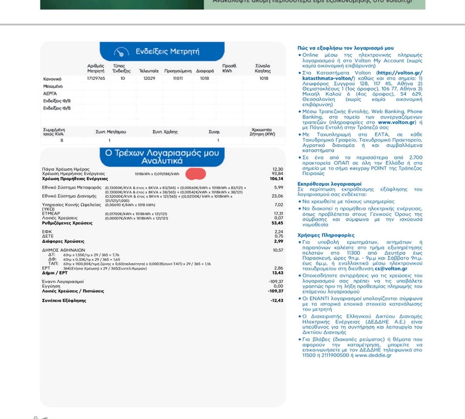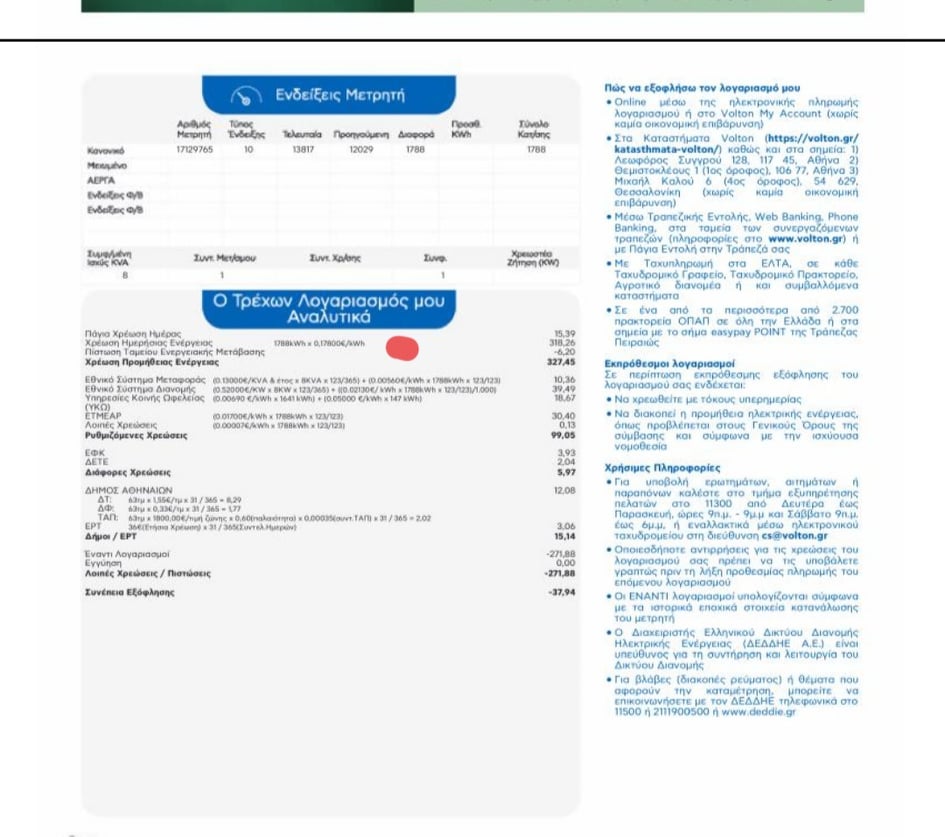 Πολίτης με 24μηνο συμβόλαιο σταθερής χρέωσης ενέργειας στα €0,07311/kwh ή €0,0658/kwh σε εμπρόθεσμη πληρωμή, χωρίς ρήτρα αναπροσαρμογής, (σε περίπτωση αποχώρησής του μάλιστα από την εταιρεία θα κατέβαλλε αποζημίωση για μη τήρηση συμφωνηθέντων!) είδε στον εκκαθαριστικό λογαριασμό στις 10/11/2021 να αλλάζουν μονομερώς το συμβόλαιο και να του χρεώνουν €0,09218/kwh (αύξηση 26%) και στη συνέχεια στον εκκαθαριστικό λογαριασμό στις 04/03/2022 να του χρεώνουν €0,178/kwh (αύξηση 139%).